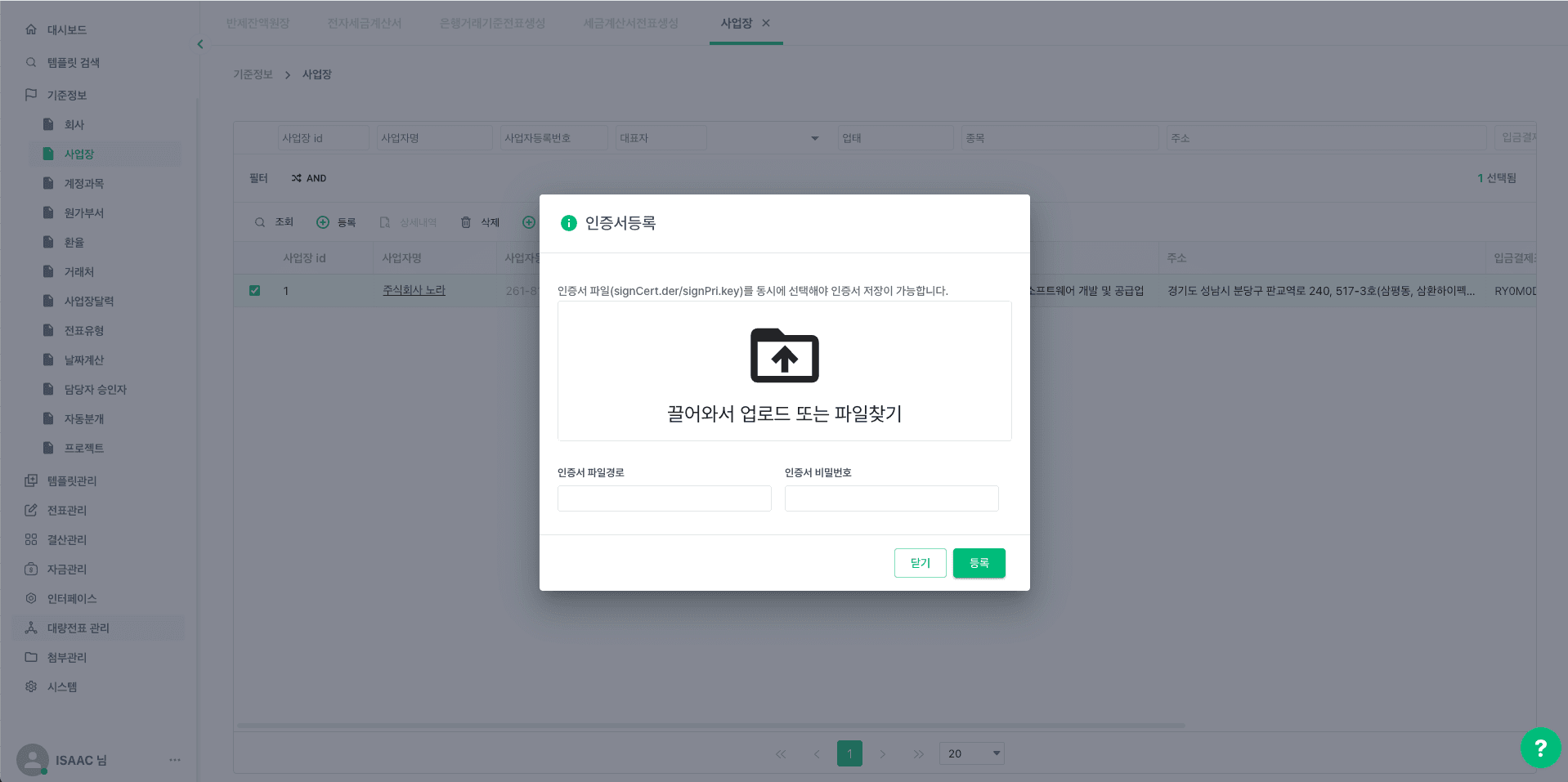홈택스에 등록된 동일한 인증서를 “전부" 사업장에 등록을 합니다.